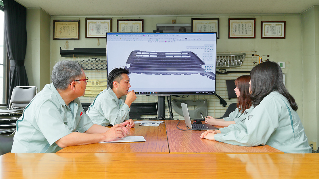 最大2,500tクラスの大型成形機に対応する設備力と、熟練の職人技、そして最新のデジタル技術を融合。これにより、開発リードタイムの短縮と、急な仕様変更にも柔軟に応える機動力を実現し、グローバル市場で求められる品質を安定的に供給しています。