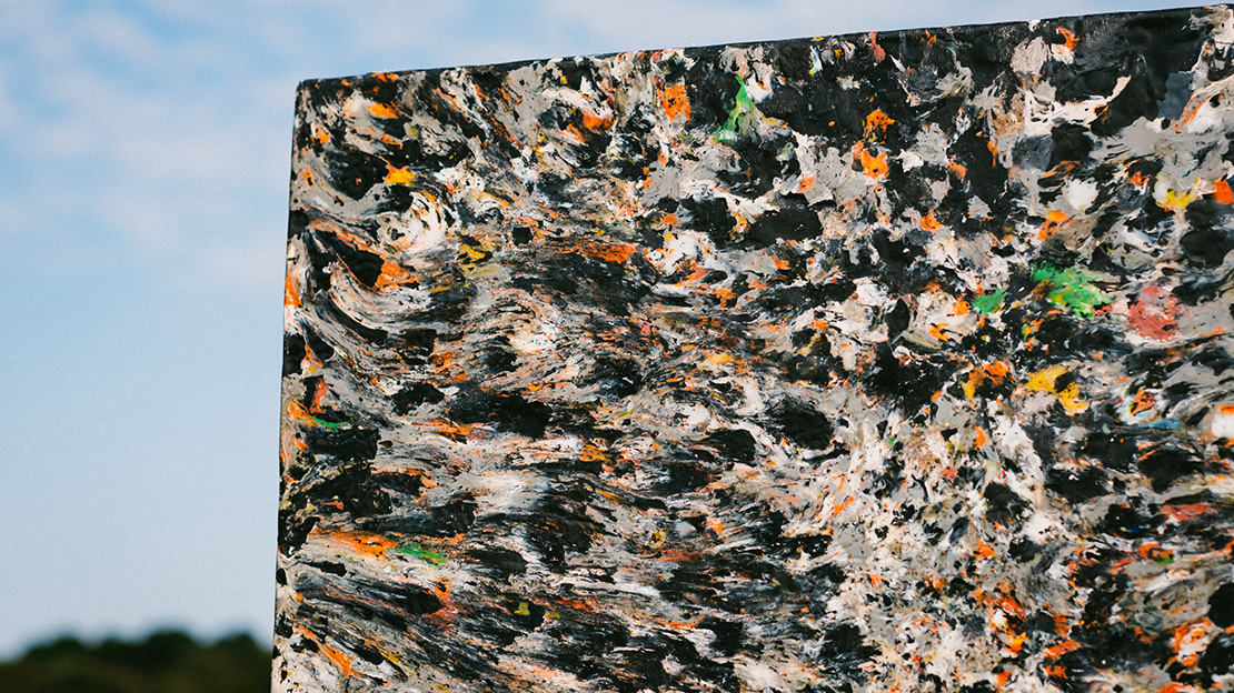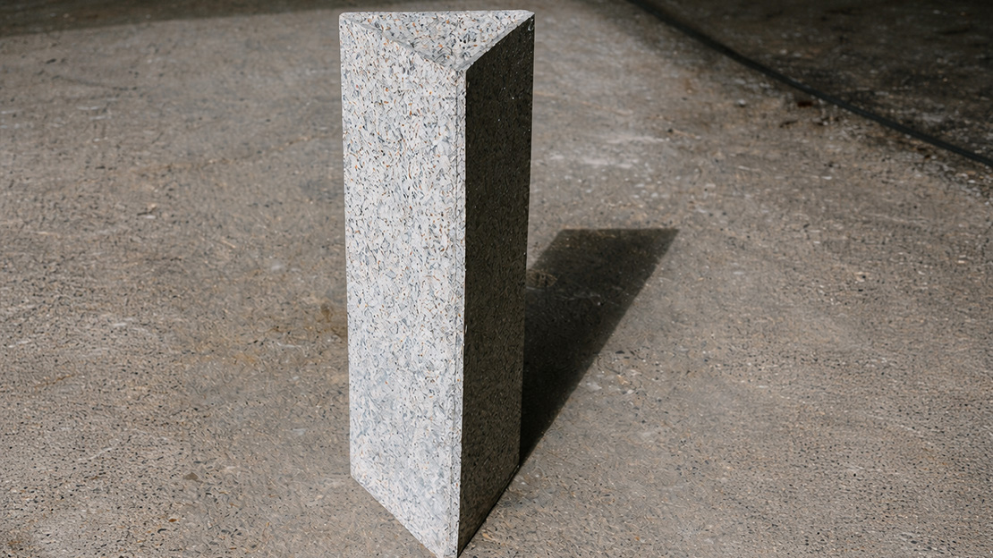 廃棄プラスチックの色や配置を緻密にコントロールして生み出されるマーブル模様の板材には、世界に二つと同じものはありません。オフィスのテーブル天板や店舗什器として、企業のサステナビリティへの姿勢を美しく視覚化します。